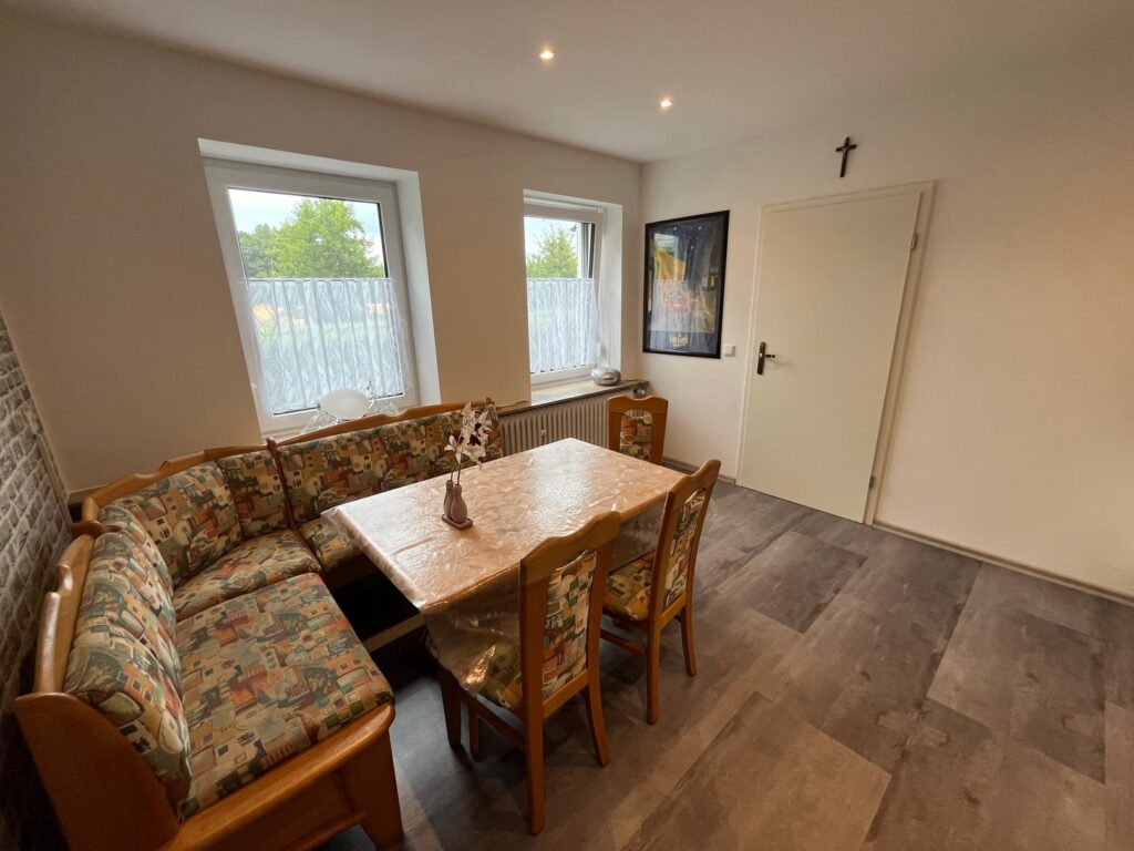 Heller Arbeits-/Esstisch mit Sitzgelegenheit